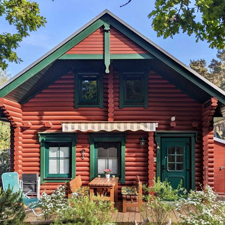 160 m zum Strand - Blockbohlen-Ferienhaus