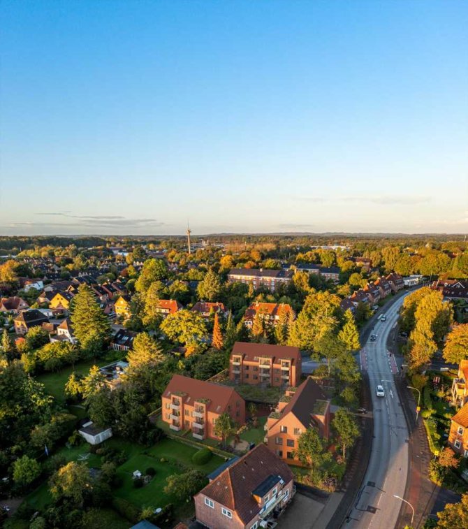 Unweit der Eckernförder Altstadt wird das Neubauobjekt DOMSTAG27 entstehen. Insgesamt bauen wir 22 Eigentumswohnungen, verteilt auf 3 Häuser. Die Architektur der Häuser sowie der typisch norddeutsche rote Verblendstein passen sich sehr gut der näheren Umgebung an und vervollständigen an dieser Stelle das Stadtbild.