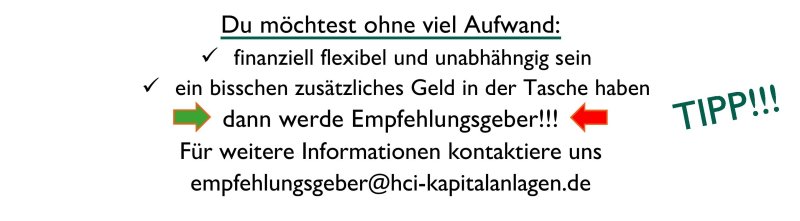 Sie suchen eine leichte Tätigkeit mit einem guten Zusatzverdienst? Dann kommen Sie in unser Team und werden EMPFEHLUNGSGEBER. Nach einem erfolgreichen Abschluss gibt es einen lukrativen Bonus.
