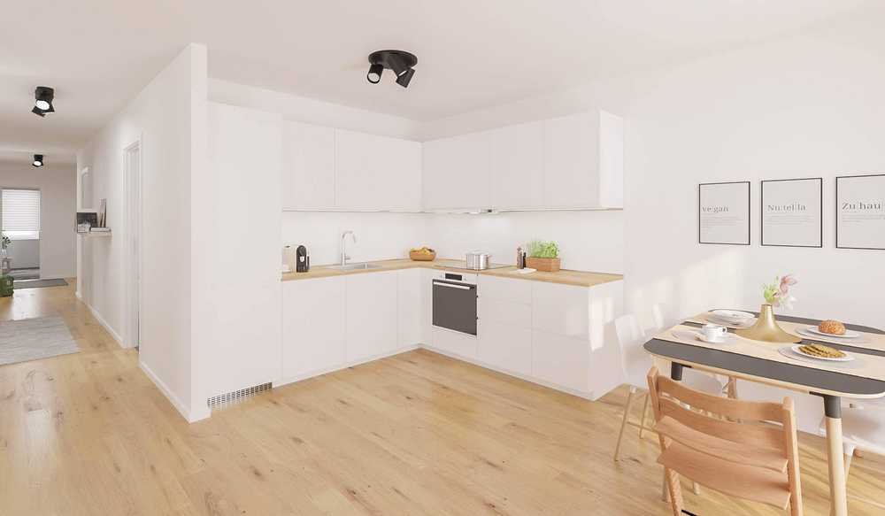 Vom Eingangsbereich gelangen Sie in den geräumigen Flur, der Sie in alle Zimmer führt. Vier helle und freundliche Zimmer bieten Platz für die ganze Familie. Das Herzstück der Wohnung ist der offene Wohn- und Essbereich mit angrenzender offener Küche. Von hier aus betreten Sie die Terrasse, die zum Entspannen einlädt. Zwei Bäder sorgen für zusätzlichen Komfort. Ein Abstellraum und ein Keller sorgen für zusätzlichen Stauraum. Sicher und wettergeschützt: Parken Sie Ihr Auto einfach und bequem in der Tiefgarage.