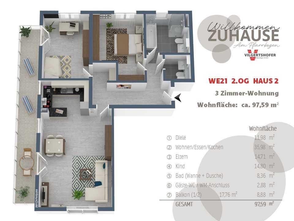 Die schön geschnittenen 2- bis 4-Zimmerwohnungen punkten mit ihren großzügigen Wohnflächen zwischen ca. 64 und knapp 111 m² sowie vielen durchdachten Details. Wer uns kennt, weiß: Bei VILGERTSHOFER setzen wir auf bewährte Qualität namhafter Hersteller wie z.B.: Busch-Jaeger, Hansgrohe, Villeroy&Boch, Internorm, Gira uvm. Die Wohnungen sind mit geöltem Eiche-Parkett, die Bäder mit eleganten Großformat-Fliesen ausgestattet. Die offenen Wohn-, Ess- und Kochbereiche zeichnen sich durch optimale Einrichtungsmöglichkeiten bei gleichzeitiger Funktionalität aus, so dass Behaglichkeit & Komfort garantiert sind. Personen mit Einschränkungen in der Mobilität verfügen in den Erdgeschosswohnungen über ausreichend Bewegungsflächen, da die Grundrisse nach den Anforderungen der Barrierefreiheit geplant wurden. Selbstverständlich führt ein Aufzug vom Keller- bis ins Dachgeschoss, so dass alle Wohnungen auch im Alter, oder aber mit Kinderwägen und Einkäufen bequem erreichbar sind.