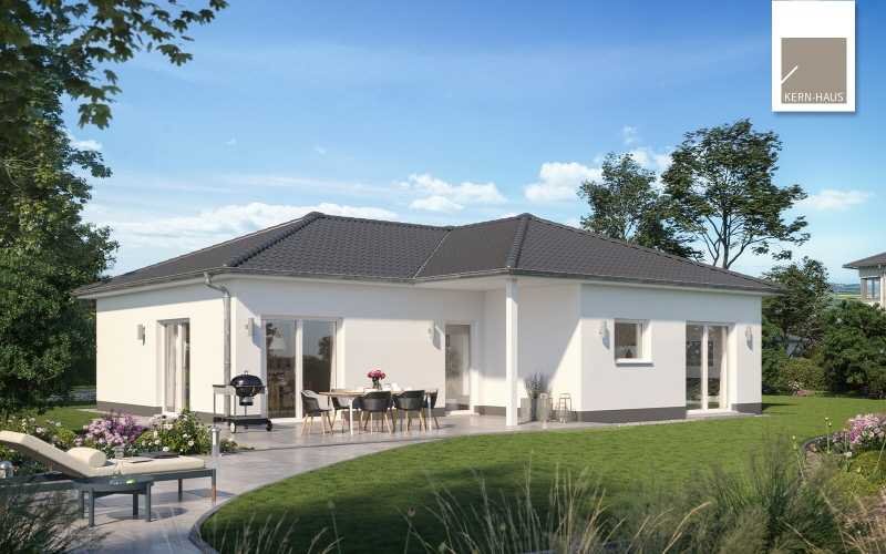 Kern-Haus bringt Sie in die eigenen vier Wände! Das Familienhaus Enea überzeugt als ebenerdiger Wohntraum mit einem offenen Wohn-/Essbereich mit angrenzender Küche. Hier kann das Leben statt finden. Außerdem bietet das Haus ein Elternschlafzimmer, ein Kinderzimmer und ein Home-Office. Genug Räume um Rückzugsmöglichkeiten zu schaffen. Abgerundet wird der eingeschossige Grundriss durch ein Familienbad, ein Gäste-WC und dem Hauswirtschaftsraum.