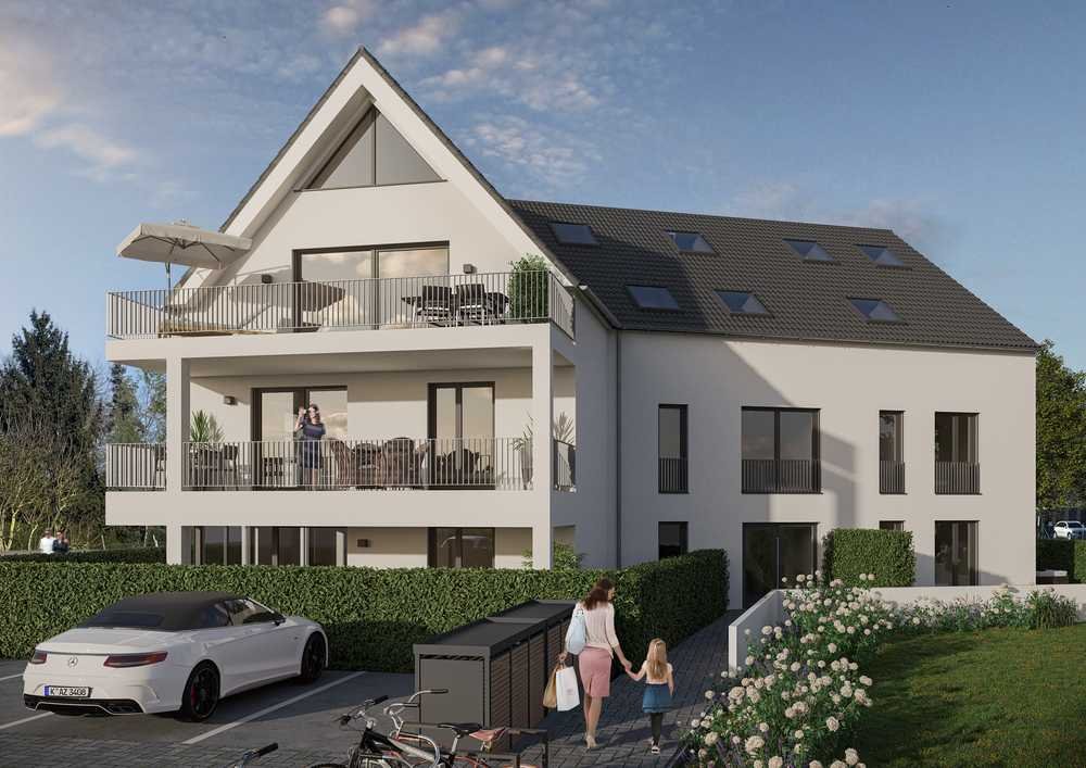 ein modernes Mehrfamilienhaus mit sieben Wohneinheiten. Es wird als modernes und zeitgenössisches Mehrfamilienhaus mit aktuellem Wohnstandard und -komfort als Neubau realisiert.