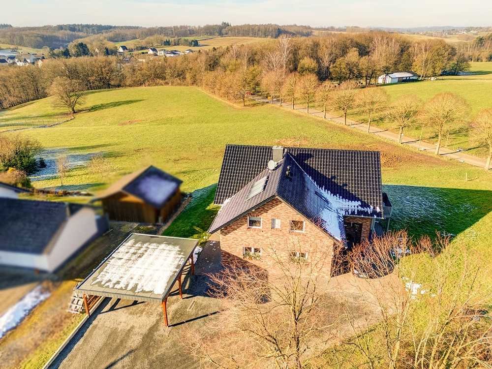 Zu bemerken ist die Wohnlage der schönen Immobilie inmitten des Ortes mit einem freien Blick in Wald und Flur. Das Grundstück ist weitgehend ebenerdig und bietet im vorderen Grundstücksbereich einen großzügigen Hofraum mit üppigen Parkflächen sowie ein Carport für 2 PKW, Terrasse und Freiflächen im hinteren Bereich des Grundstückes.