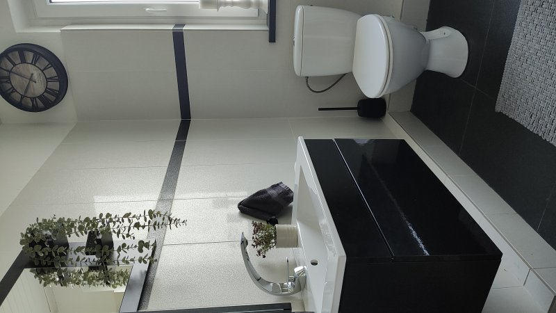 Nach Betreten der Eingangstür finden Sie auf der rechten Seite Platz für Ihre Garderobe. Hier befindet sich auch ein Hauswirtschaftsraum, wo Sie Ihre Waschmaschine und Ihren Trockner verstauen können. Zudem gibt es hier ein zweites WC mit Waschbecken.