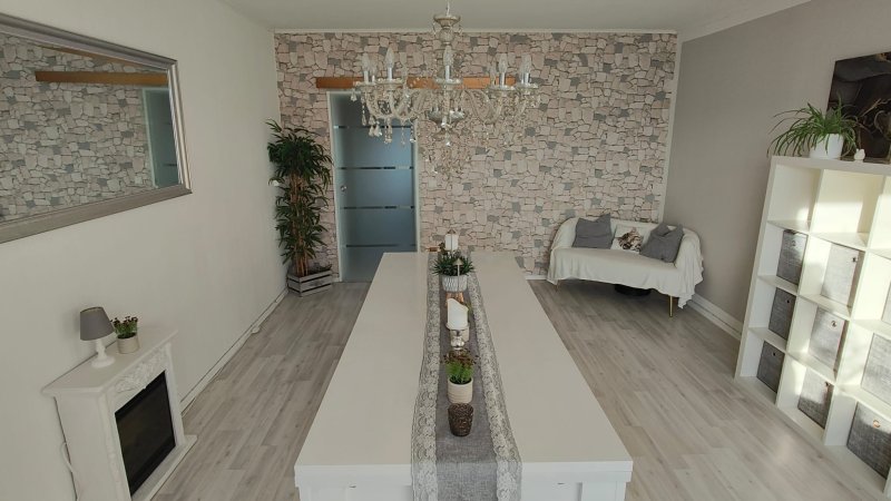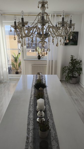 Das Wohnzimmer liegt zur Südseite ausgerichtet. Entspannen Sie auf Ihrem Sofa oder genießen Sie gemeinsame Stunden beim gemütlichen Essen. Vom Wohnzimmer aus haben Sie Zugang zum Balkon, der mit einer Markise ausgestattet ist und dessen Boden vor ein paar Jahren neu mit Fliesen belegt wurde.