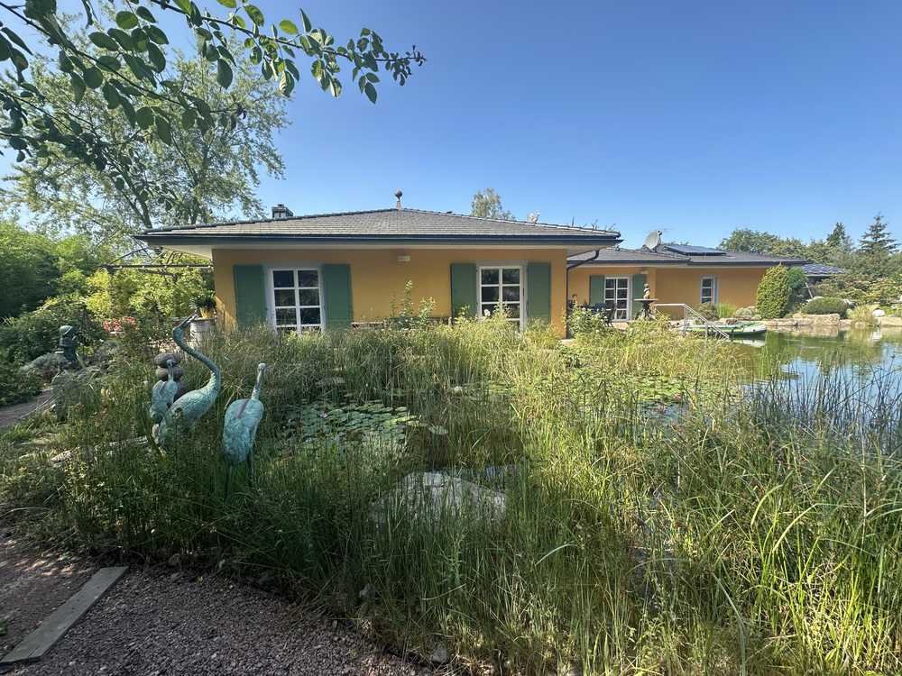 ansprechende Anwesen mit einer im Bungalowstil erbauten Unternehmervilla. Auf nicht einsehbaren 3.685m² finden Sie das Haupthaus mit Doppelgarage, ein Gästehaus, ein Haus mit