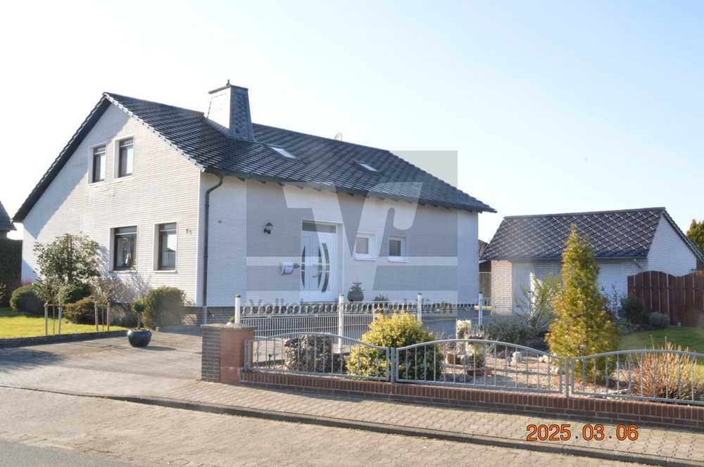 Es befindet sich auf einem gepflegten Grundstück mit pflegeleicht angelegtem Garten und bietet großzügigen Wohnraum sowie eine große Doppelgarage.