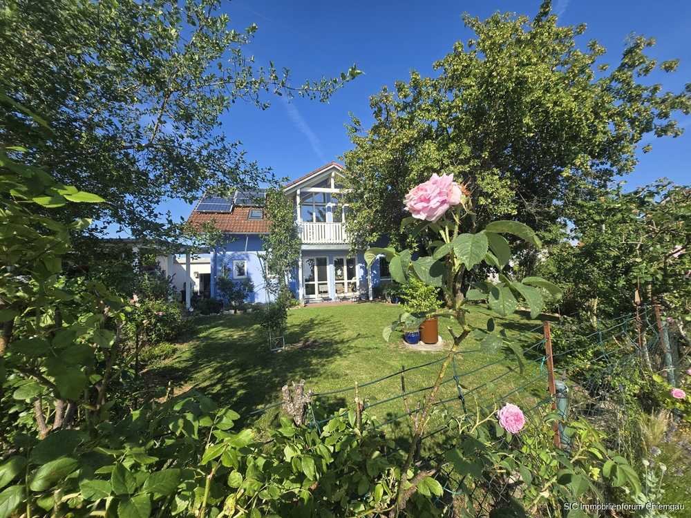 Einfamilienhaus (Holzständerbauweise), voll unterkellert, Bj. 1994 mit Holzschuppen und Carport. Der Garten ist liebevoll gepflegt und eingefriedet. Das Haus steht im Außenbereich.