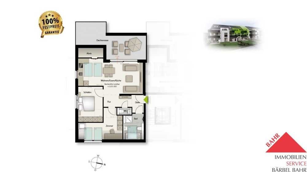 Willkommen in Ihrem neuen Zuhause! Diese außergewöhnliche 3-Zimmer-Neubauwohnung im Dachgeschoss vereint modernes Wohnen mit einzigartigem Charme und einer atemberaubenden Aussicht. Der offene Wohn- und Essbereich mit integrierter Küche schafft eine stilvolle und einladende Atmosphäre – perfekt für gesellige Abende oder entspannte Stunden. Ein praktischer Abstellraum in der Küche sorgt für zusätzlichen Stauraum und Ordnung.