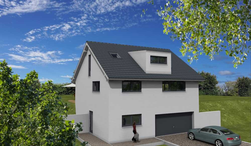 Das Einfamilienhaus zeichnet sich durch eine gehobene Innenausstattung aus. Es handelt sich hierbei um einen Erstbezug. Neben fünf attraktiven Zimmern gibt es außerdem ein separates Gäste-WC mit bodengleicher Dusche. Das Haus wird 2025 erbaut und per Wärmepumpe beheizt. Besonders praktisch: Die im Haus integrierte Garage spart Ihnen langwieriges Parkplatzsuchen.