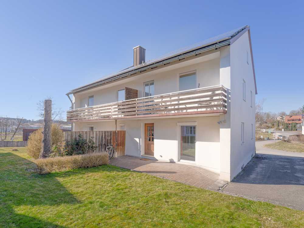 Im Erdgeschoss befindet sich die große Wohnung mit zwei Schlafzimmern, einem Wohnzimmer, einem Esszimmer, separate Küche mit Frühstücksecke, Badezimmer mit Dusche und WC, sowie ein Abstellraum. Vom Wohnzimmer und dem Esszimmer besteht ein direkter Zugang zur sonnigen Südterrasse. Die Wohneinheit im EG ist aktuell nicht vermietet.
