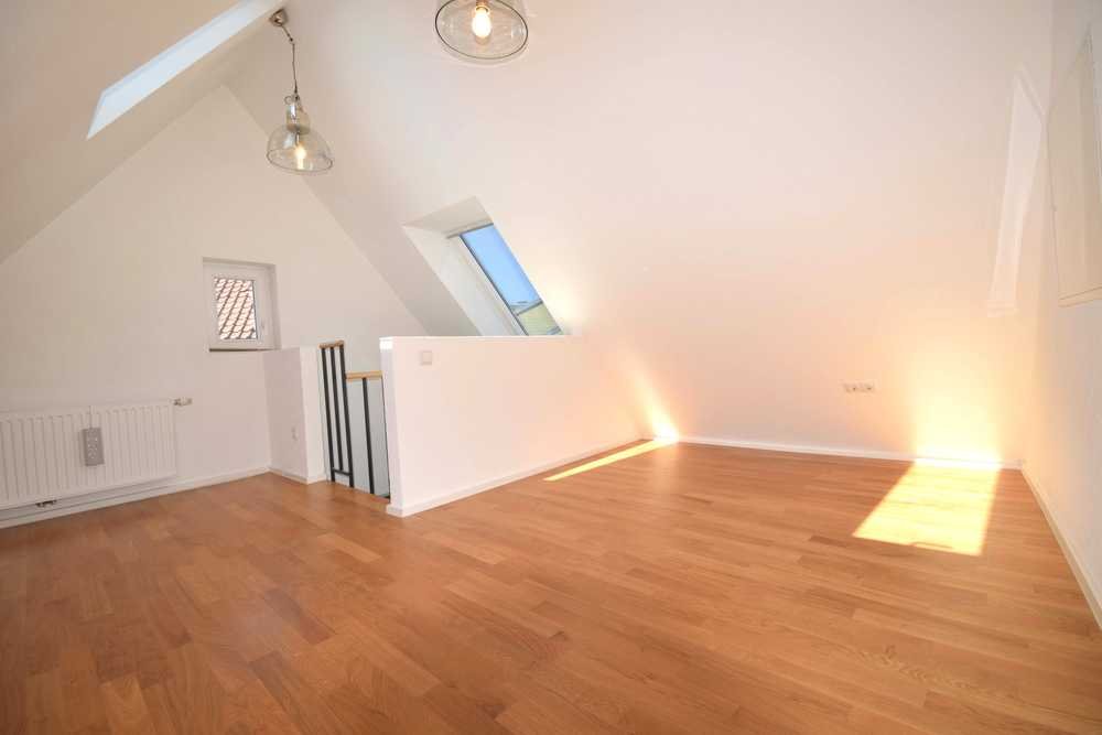 Im Obergeschoss erwarten Sie zwei gemütliche Zimmer sowie ein helles Tageslichtbad mit Dusche, WC und Waschtisch. Ein besonderes Highlight ist das großzügige Studio im Dachgeschoss, das sich ideal als Arbeitsbereich oder zweiter Rückzugsort nutzen lässt.