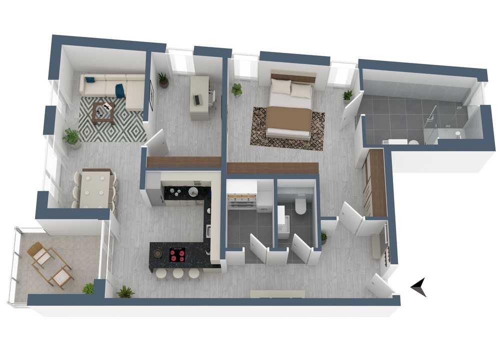 Der Wohn-Essbereich mit über 36 qm und mit sehr großen bodentiefen Fenstern lässt sehr viel Sonnenlicht herein. Genießen Sie auch die Zeit auf dem Balkon. Ihr "en Suite" Tageslicht-Badezimmer grenzt an Ihr Schlafzimmer an und Sie haben damit einen autarken "privaten" Bereich während Ihre Gäste das separate großzügige Duschbad nutzen können.