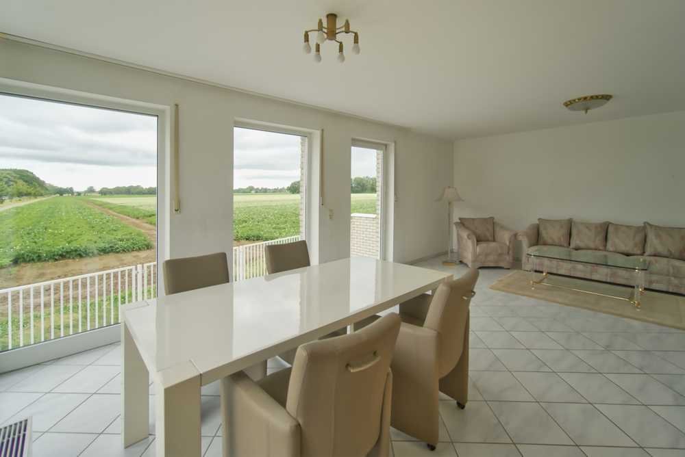 Die Immobilie empfängt Sie mit einem einladenden Eingangsbereich, einem angrenzenden Gäste-WC und einer Küche, die ausreichend Platz für einen Frühstückstisch bietet. Vom Eingangsbereich führt der Weg am offenen Treppenhaus vorbei in den großen Wohn-/Essbereich. Die bodentiefen Fensterfronten sorgen für viel Tageslicht und bieten einen atemberaubenden Blick auf die umliegenden Felder. Genießen Sie Ihren Feierabend auf dem angrenzenden Balkon oder der Terrasse ohne Garten.