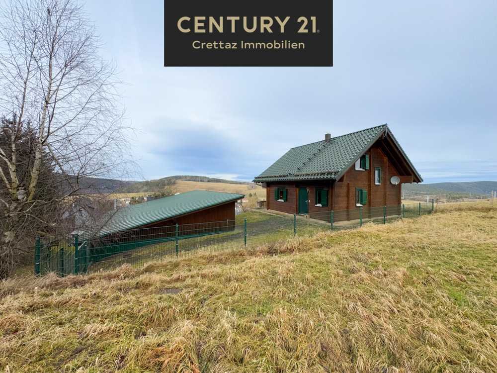 RESERVIERT - Das Blockhaus mit davorliegender Halle befindet sich ruhig gelegen, am Ortsrand von Meura auf einem ca. 489 m² großen Grundstück. Das Haus besitzt eine Wohnfläche von ca. 105 m² und verteilt sich auf 2 Etagen. Im Erdgeschoss befindet sich das Herzstück des Hauses, der großzügige Wohnbereich mit Zugang zur großen Terrasse und traumhaftem Weitblick auf die umliegende Landschaft. Ein weiteres Highlight ist der moderne Schwedenofen, der nicht nur ein optischer Blickfang ist, sondern auch die Wohnräume mit wohliger Wärme versorgt. Gleich nebenan befindet sich die Küche, welche mit allen wichtigen Elektrogeräten ausgestattet ist. Außerdem gibt es ein Gäste-WC mit Waschbecken und eine kleine Garderobe am Hauseingang. Über die Holztreppe gelangen Sie ins obere Stockwerk. Hier befindet sich das Hauptbadezimmer mit Dusche, ein kleiner Abstellraum und das große Schlafzimmer mit Zugang zum Balkon. Die große Halle (unbeheizt) mit elektr. Tor und einer Fläche von ca. 100 m², bietet Platz für mehrere Fahrzeuge und Stauraum, außerdem befindet sich darin ein funktionstüchtiger Kühlraum. Überzeugen Sie sich selbst vom Potenzial der Immobilie im Zuge einer Besichtigung.