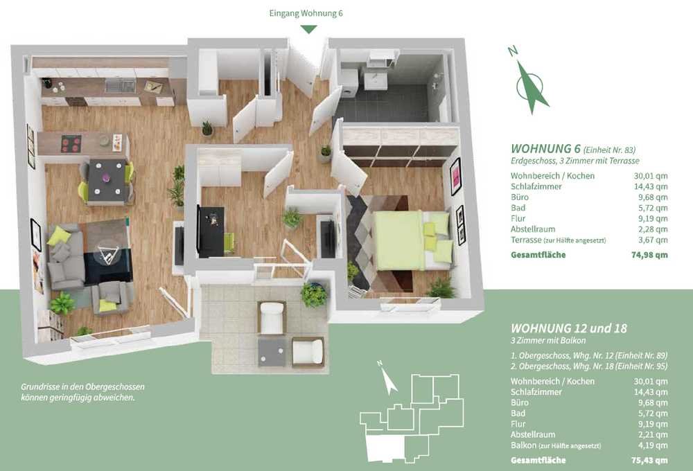 Die Wohnungen bestechen durch helle Räume, die eine angenehme Atmosphäre schaffen. Die Grundrisse sind funktional konzipiert, um Ihren Alltag optimal zu unterstützen. Der geräumige Küchen- und Wohnbereich bildet das Herzstück jeder Wohnung. Hier können Sie nicht nur kochen, sondern auch gemütliche Abende mit Familie und Freunden verbringen. Die offene Gestaltung schafft eine kommunikative Atmosphäre.