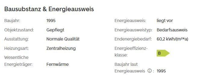 | Energieausweis: | Energieausweis in Vorbereitung |