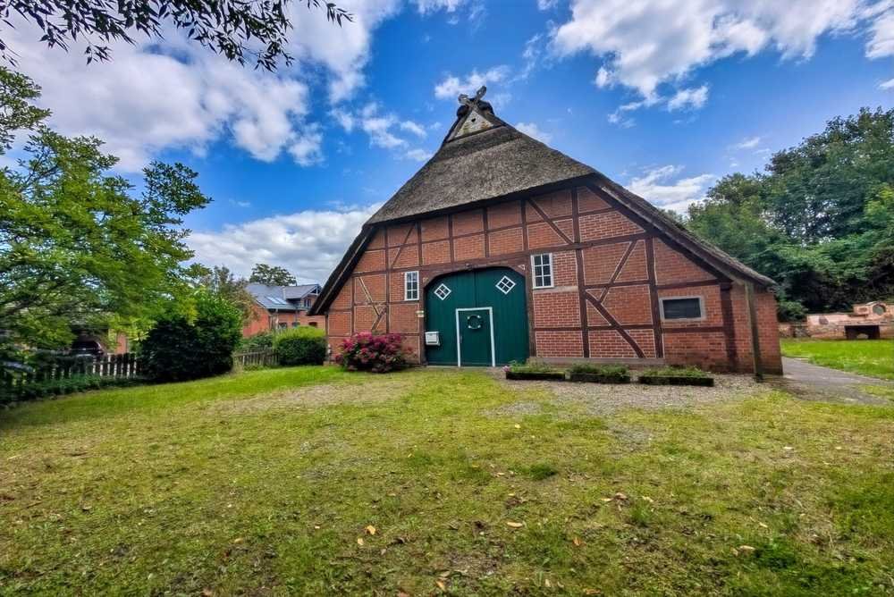 Wir bieten Ihnen dieses denkmalgeschützte Fachhallenhaus (seit 2020) Das Haus wurde im Jahr 1928 von Johann Sieger und seiner Frau Dorothea erbaut und befindet sich seither in Familienbesitz. Das Reetdach Fachwerkhaus mit derzeit ca. 86 m² Wohnfläche und ca. 49 m² Nutzfläche besticht nicht nur durch seine besondere Lage, sondern auch durch die Möglichkeiten, die Ihnen zur Verwirklichung Ihres Wohntraumes zur Verfügung stehen. Den Dielenbereich des Hauses und die inbegriffenen Stallungen kann der zukünftige Eigentümer in den Wohnbereich integrieren, um so mehr Wohnraum zu erschaffen. Ebenso ist das Dachgeschoss (Heuboden) noch nicht ausgebaut.