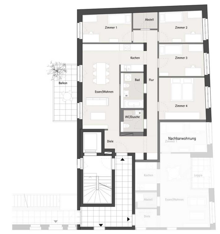 Die Grundrisse mit 1 bis 6 Zimmern bieten eine ausgewogene Mischung aus Großzügigkeit und pragmatischer Nutzbarkeit. Die meisten Einheiten sind durch den Baukörper durchgesteckt.