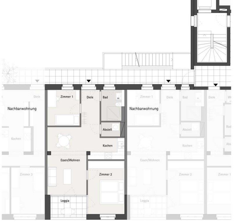 Die Grundrisse mit 1 bis 6 Zimmern bieten eine ausgewogene Mischung aus Großzügigkeit und pragmatischer Nutzbarkeit. Die meisten Einheiten sind durch den Baukörper durchgesteckt.