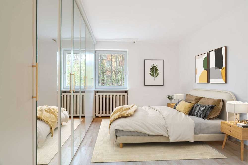 Das Schlafzimmer ist mit einem praktischen, eingebauten Kleiderschrank ausgestattet, der für ausreichend Stauraum sorgt und den Raum besonders funktional macht. Eine Diele mit zusätzlichen Einbauschränken bietet weiteren Platz für Ihre persönlichen Gegenstände und sorgt für Ordnung und Übersichtlichkeit.
