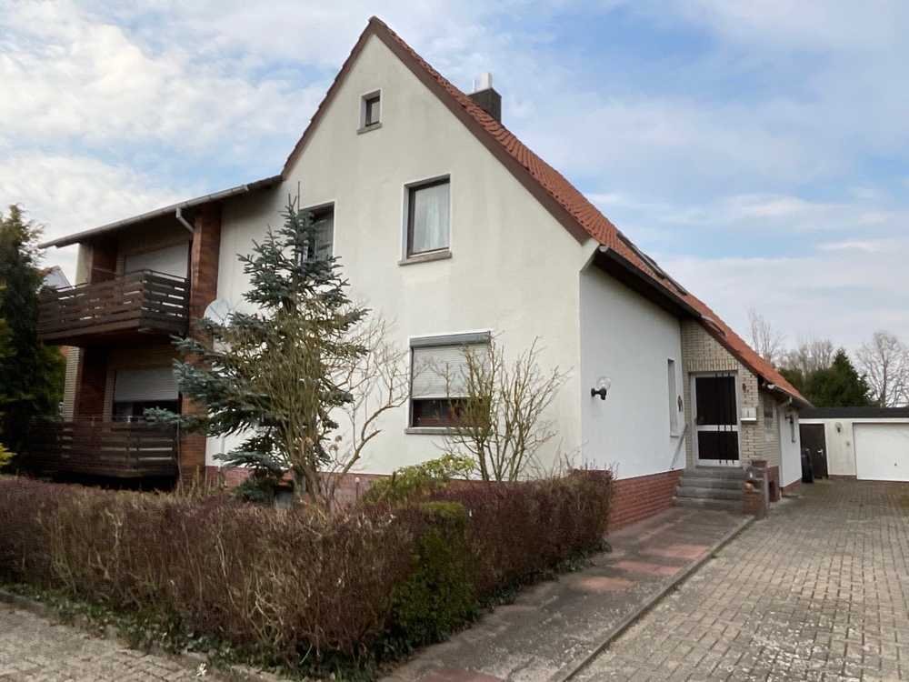 Das Wohnhaus wurde 1955 als Siedlungshaus mit Stallanbau errichtet und 1974 um einen Anbau erweitert. Durch die Erweiterung ist hier Platz für eine zweite Familie entstanden. So finden Sie zwei abgeschlossene Wohnungen jeweils mit einer großen Diele, Wohn-Esszimmer, Küche, Schlafzimmer, Kinderzimmer, Bad und Balkon. Die Wohnzimmer sind mit Stäbchenparkett ausgelegt und im Erdgeschoss ist ein Kaminofen vorhanden. Das Haus ist unterkellert und kann recht kurzfristig übernommen werden. Auf dem Grundstück befindet sich ein Pkw- Stellplatz und eine Garage.