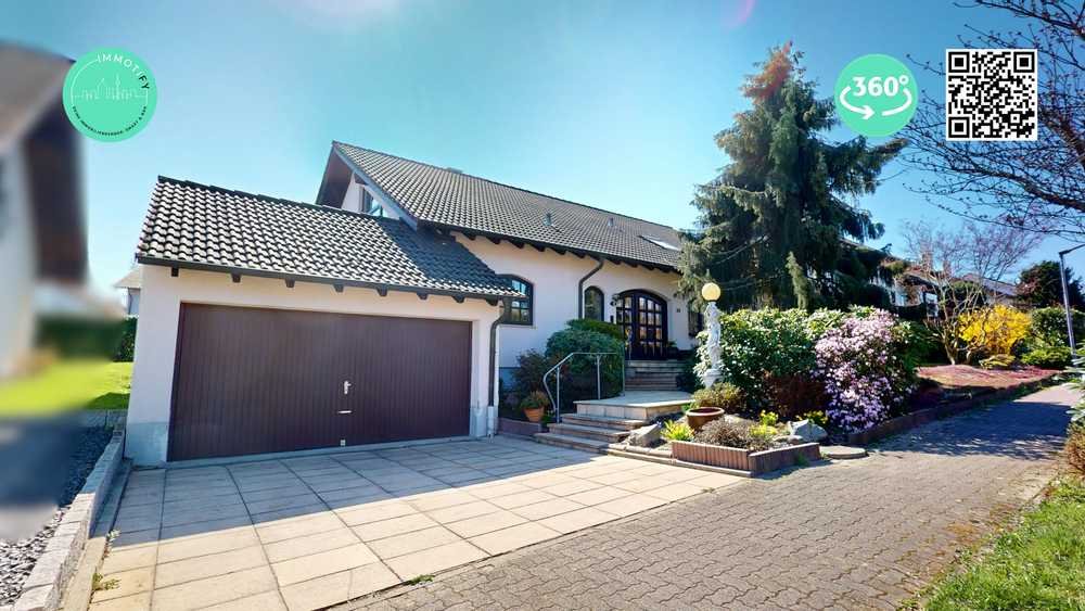 Zu den praktischen Eckdaten gehören eine Doppelgarage, zwei weitere Außenstellplätze in der Einfahrt, ein schöner Garten mit sonniger Terrasse und Markise, sowie ein überdachter Balkon im Obergeschoss. Mit insgesamt sieben Zimmern, davon drei Schlafzimmer, bietet das Haus viel Raum für Familienleben, Arbeiten und Hobbys.