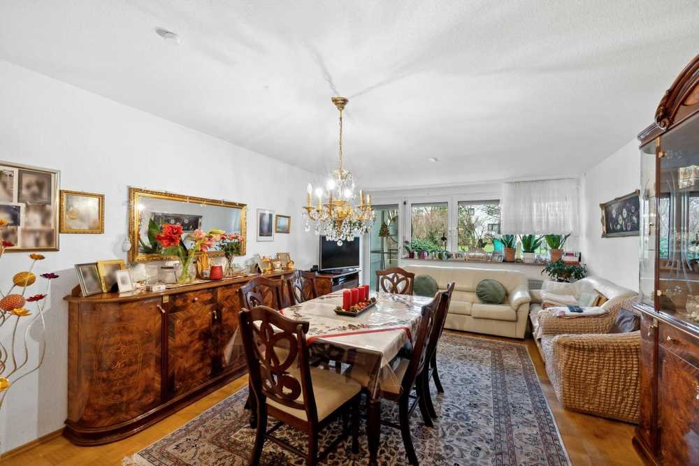 Das Gebäude wurde in massiver Bauweise errichtet und überzeugt durch eine solide Substanz. Die Wohnung selbst ist mit Parkettboden und mit hochwertigen Korkbelag ausgestattet. Die praktische Einbauküche bietet Stauraum und Komfort. Das Bad sowie das separate WC wurden 2023 modernisiert. Zusätzliche Details wie ein großer Süd-Balkon und ein kleiner West-Balkon sorgen für eine angenehme Wohnatmosphäre. Ein separater Kellerraum im Untergeschoss bietet Ihnen zusätzlichen Stauraum. Es gibt außerdem rund um das Haus eine großzügige Gartenanlage zur gemeinschaftlichen Nutzung - ideal zur Erholung im Grünen geeignet!