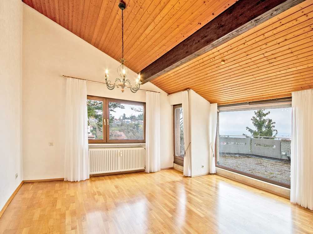 In diesem Villengebiet steht eine Eigentumswohnung nur ganz selten zum Verkauf. Entdecken Sie diese einladende 3-Zimmer-Dachgeschosswohnung mit ca. 83 m² Wohnfläche. Die Wohnung bietet den idealen Rückzugsort für Paare oder kleine Familien, die Wert auf Ruhe und eine fantastische Aussicht legen. Die Wohnung befindet sich im Dachgeschoss eines gepflegten Hauses und besticht durch ihre helle und freundliche Atmosphäre. Ein großzügiger Wohn-/Essbereich mit direktem Zugang zur Dachterrasse lädt zum Verweilen ein und eröffnet einen herrlichen, unverbaubaren Blick in die Ferne - ein idealer Ort zum Entspannen. Die separate Küche bietet ausreichend Platz für kulinarische Aktivitäten Das ruhig gelegene Schlafzimmer sowie das gemütliche Kinder- oder Arbeitszimmer ermöglichen individuelle Gestaltungswünsche und Rückzugsmöglichkeiten. Das Hauptschlafzimmer bietet mit Einbauschränken praktischen Stauraum für Ihre Garderobe. Ein helles, weitläufiges Badezimmer mit Badewanne, Doppelwaschbecken und WC, sowie großzügiger Stauraum stehen zur Verfügung. Die Wohnung ist überwiegend mit Parkettboden und in der Küche sowie im Badezimmer mit Fliesenboden ausgestattet. Ein Kellerraum gehört ebenfalls zum Objekt. Für Ihr Fahrzeug steht ein Garagenstellplatz in einer Doppelgarage bereit. Die Immobilie wurde fortlaufend modernisiert, um den heutigen Wohnstandards gerecht zu werden. So wurde das Dach im Jahr 2010 erneuert. Die Ölheizung mit Baujahr 1993 soll zeitnah durch eine moderne Wärmepumpe ersetzt werden, was zu einer deutlichen Steigerung der Energieeffizienz führen wird. Diese charmante Dachgeschosswohnung bietet ein gemütliches Zuhause mit herrlichem Weitblick. Mit einigen Modernisierungen kann hier ein wahres Schmuckstück geschaffen werden. Die gehobene Lage macht dieses Objekt zu einem idealen Ort zum Wohlfühlen.