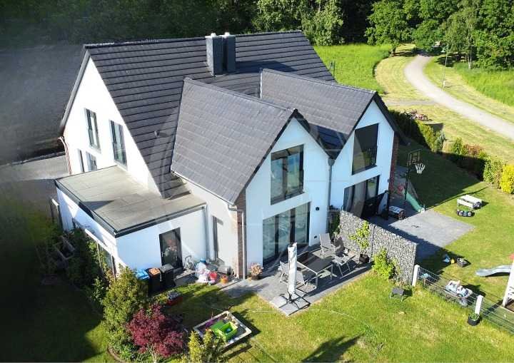 Diese im Jahr 2020 erbaute, hochwertige Doppelhaushälfte verbindet modernen Wohnkomfort mit energieeffizienter Bauweise und liegt in einem familienfreundlichen Neubaugebiet in einer ruhigen Sackgasse mit einem unverbaubaren Blick in die Natur – ideal für alle, die Wert auf Ruhe, Privatsphäre und eine durchdachte Architektur legen.