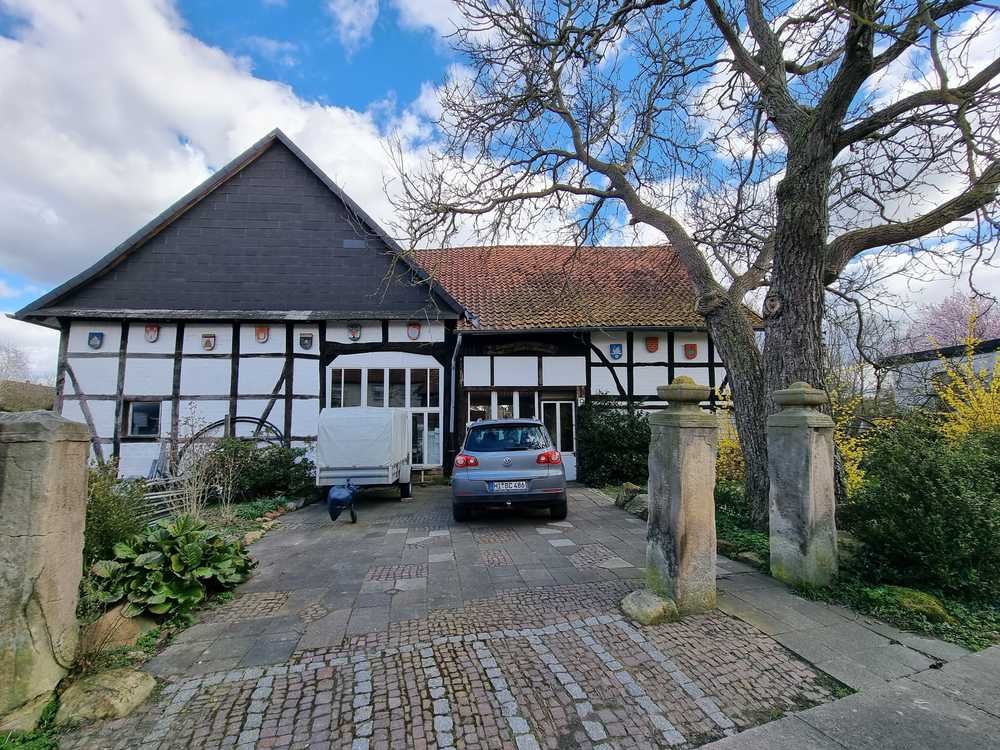 Der Hof besteht aus einem Wohnhaus mit drei Wohnungen sowie einer Scheune mit Werkstatt und überdachter Einfahrt. Das große Grundstück umfasst 2.533 m² und hat Neubaupotential. Es gibt sieben Außenstellplätze.