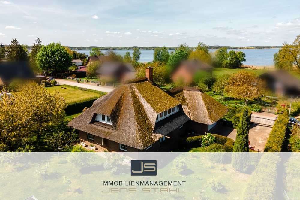 Am Ende einer ruhigen Anwohnerstraße, nur wenige Schritte vom Wasser entfernt, präsentiert sich diese im Jahr 2004 erbaute Reetdachvilla als echtes Liebhaberstück. Eingebettet in ein großzügiges Grundstück von 1.999 m² überzeugt dieses Anwesen mit seinem klassischen Stil, einer durchdachten Raumaufteilung und vielen praktischen Details – ideal für Naturliebhaber, Bootsbesitzer und alle, die das Besondere suchen.