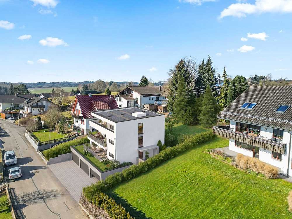 Das gesamte Gebäude wurde auf moderne Anforderungen hin konzipiert. Energieeffiziente Heiztechnik, großzügige Doppelgaragen mit Wallbox-Vorbereitung, ein komfortabler Aufzug vom Untergeschoss bis ins Dachgeschoss sowie durchdachte Grundrisse machen dieses Bauvorhaben zu einem Ort, an dem Sie ankommen und bleiben möchten. Die ruhige, naturnahe Lage mit Blick über Felder und Wiesen bietet ideale Voraussetzungen für entspannte Wohnqualität – ohne dabei auf die Annehmlichkeiten einer gut entwickelten Infrastruktur verzichten zu müssen. Einkaufsmöglichkeiten, eine Schule, Kindergärten und ärztliche Versorgung sind ebenso vorhanden wie ein lebendiges Gemeindeleben.