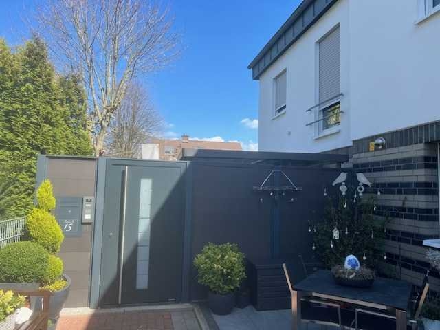 Das schöne, zweistöckige Reihenendhaus können Sie ab sofort erwerben. Die Immobilie besticht außerdem durch eine luxuriöse Innenausstattung. Neben vier einladenden Zimmern zählen zwei Badezimmer zu dem Objekt. Praktischerweise gehört auch ein Doppel-Carport ( Umgebaut zur Garage mit Tor 2024 ) zu der Immobilie. Der Gesamtpreis des angebotenen Grundstücks mit Objekt beträgt 675.000 Euro.
