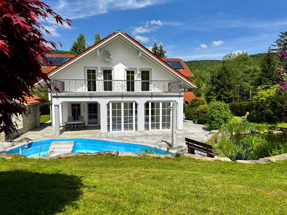 Im EG bietet der große Wintergarten ausreichend Platz zum entspannen und einen schönen Blick auf den Teich, Garten und den Pool.
