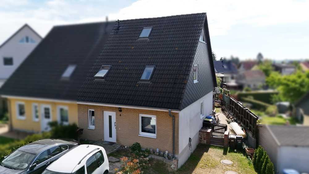 Die angebotene Doppelhaushälfte verfügt im Erdgeschoss über einen großen Wohnbereich mit Ausgang zur Terrasse, eine gräumige Küche, ein Gäste WC und einen kleinen Abstellraum. Im Wohnbereich befindet sich, neben dem Kamin, die Holzwangentreppe zum Obergeschoss. Hier befinden sich ein Bad, ein Kinderzimmer und ein Schlafzimmer mit großem Ankleidezimmer, welches durchaus zu einem weiteren Zimmer ausgebaut werden könnte. Über eine Raumspartreppe im Kinderzimmer gelangt man in den ausgebauten Spitzboden. Insgesamt gibt es zwei PKW Stellplätze. Rückseitig am Haus befindet sich eine überdachte Terrasse, bei welcher 2022 der Holzbelag erneuert wurde, mit gemauertem Grill und ein kleines Stück Garten. Im Jahr 2020 wurde eine neue Terrassentür eingebaut und eine neue Buderus Gasbrennwerttherme installiert. Das Haus hat eine sehr gute Substanz, ist jedoch als renovierungsbedürftig einzuschätzen. Vor und Rückseite des Hauses sind mit Riemchen versehen. 2022 wurde in fast allen Räumen aufwendig die Holzpaneldecke durch eine helle mit Einbauspots versehene Trockenbaudecke erneuert.