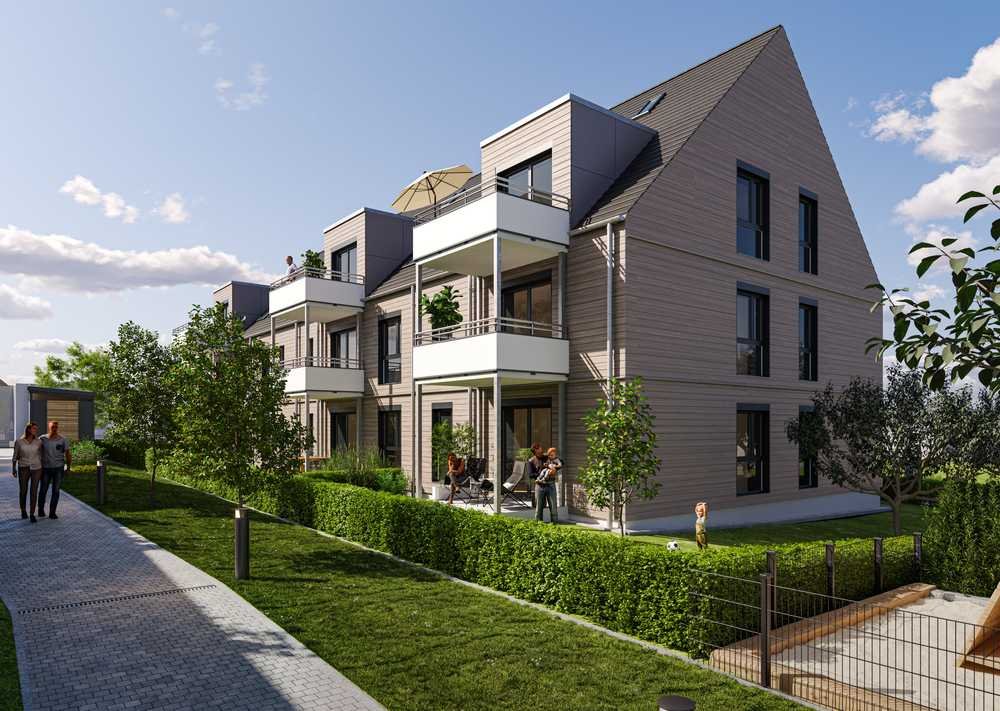 Das Neubauprojekt der Joseph Stiftung in der St.-Franziskus-Straße 2 in Eggolsheim umfasst insgesamt 9 hochwertige Eigentumswohnungen. Die Wohnanlage besticht durch ihre innovative Holzhybrid-Bauweise, die ein gesundes Raumklima und Nachhaltigkeit gewährleistet. Alle Wohnungen sind barrierefrei gestaltet und verfügen über moderne Ausstattung wie Fußbodenheizung, hochwertige Badezimmer und Parkettböden. Die Wohnungsgrößen variieren von 2 bis 4 Zimmern mit Wohnflächen zwischen ca. 51 und 107 m². Jede Wohnung verfügt über einen Balkon oder eine Terrasse, teilweise mit Garten.