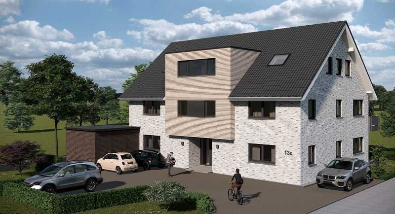 Im Erdgeschoss eines 5-Parteienhauses gelegen, verfügt diese moderne Wohnung über Wohn-Esszimmer mit offener Küche und Zugang zur Terrasse, Schlafzimmer, Bad und Hauswirtschaftsraum. Ein Gartenanteil gehört dazu, ebenso ein PKW-Stellplatz.