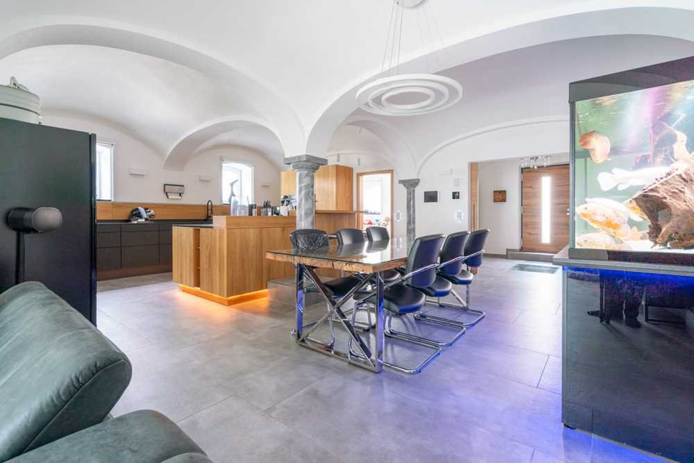 Hochwertige Walden-Küche (UVP 61.000 €), Fußbodenheizung, KNX-System, Designerbad, Wintergarten (37 m²) mit Fußbodenheizung und elektrischer Markise, Zugang zu Jacuzzi, Sauna, Outdoor-Küche und Koiteich.