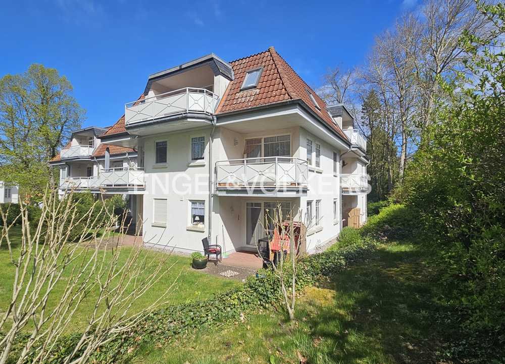 Das im Jahr 1993 in massiver Bauweise errichtete Wohnensemble, mit seiner strahlend weißen Fassade, besteht aus zwei Mehrfamilienhäusern und befindet sich in beliebter Lage auf dem Glienberg, der höchsten Erhebung des Ostseebades. Der feine Sandstrand ist fußläufig in ca. 12 Minuten durch den Wald erreichbar, das Zentrum des Ortes in ca. 10 Minuten.