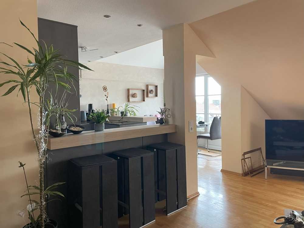 Die Dachgeschoss-Wohnung ist räumlich in zwei Ebenen aufgeteilt. Die untere Etage (85qm) besteht aus 3 Zimmern, zwei Balkonen. einem Badezimmer, einer Toilette sowie einem Abstellraum. Die großzügige Wohnküche und das moderne Wohnzimmer ist in Süd-Ostrichtung ausgerichtet. Das Bad und das separate WC wurden 2020 neu renoviert. Die obere Etage ist ein großer ausgebauter Speicherraum/Studio (30qm) inkl Whirlpoolbadewanne..