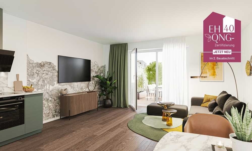 Neubau-Eigentumswohnung mit 3 Zimmern, Balkon und Stellplatz. Effizienzhaus 40-Standard + QNG