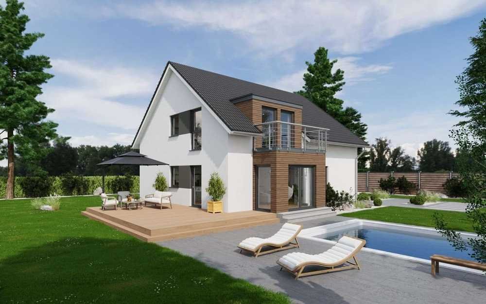 Der Hausentwurf des Zweifamilienhauses FAMILY 201 HOME&GENERATION ist als behagliches Satteldachhaus geplant. In der Architektur ist es möglich, durch diverse Anbauteile, mit einem dritten Giebel, einem Erker oder einer Haustürüberdachung den Basisentwurf zu individualisieren. Die gesamte Nettogrundfläche des Hauses beträgt 201,18 m².