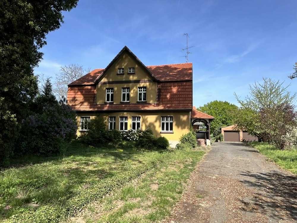 Das gutshausähnliche Wohngebäude steht unter Denkmalschutz, wurde erst im Jahr 1928 nach einem Brand errichtet und hebt sich daher optisch von der umliegenden Bebauung ab. Das massive Gebäude hat eine Putzfassade und dickes, zweischaliges Mauerwerk. Das Mansardendach ist mit roten Tonziegeln eingedeckt. Alle Fenster sind noch im ursprünglichen Stil erhalten und tragen zum besonderen Charme des Wohngebäudes bei. Der Hauptzugang liegt direkt neben der Auffahrt auf der östlichen Giebelseite des Hauses und ist über eine kleine Verdana zu erreichen. Die Immobilie wird mit einer Ölzentralheizung (Buderus) beheizt, die im Teilkeller untergebracht ist.
