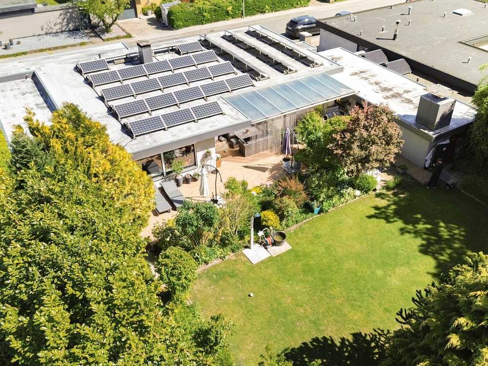Das Objekt besticht durch seine moderne Flachdacharchitektur und eine umfassende Photovoltaikanlage, die sowohl umweltfreundlich als auch kostensparend ist. Der Garten ist liebevoll angelegt und bietet mehrere Sitzmöglichkeiten sowie eine Außendusche für heiße Sommertage. Zwei Garagen mit jeweils einem zusätzlichen Werkstattbereich sorgen für ausreichend Abstellfläche.