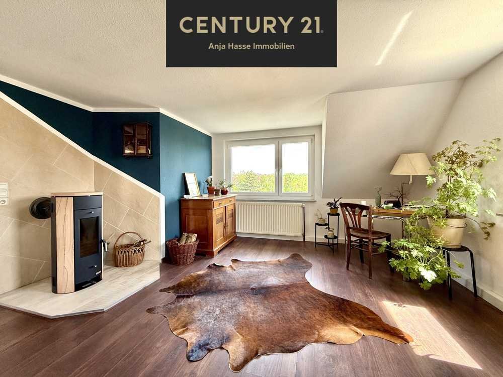 Das Dachgeschoss bildet den Mittelpunkt des Wohnens: Hier erwartet Sie eine großzügige Küche mit einem markanten Tresen – perfekt für geselliges Kochen und gemeinsame Abende. Das angrenzende Esszimmer beeindruckt mit einer Galerie und sichtbaren Holzbalken und bietet eine Raumgestaltung mit besonderer Wirkung. Das große Tageslichtbad überzeugt mit einer modernen Eckbadewanne und zwei Fenstern – ein echtes Highlight in puncto Komfort. Im geräumigen Wohnzimmer sorgt ein Kamin für wohlige Wärme und eine behagliche Wohnatmosphäre. Der Ausblick ins Grüne ist fantastisch. Ein weiteres Zimmer auf dieser Ebene kann flexibel als Schlafzimmer, Büro oder Gästezimmer genutzt werden.