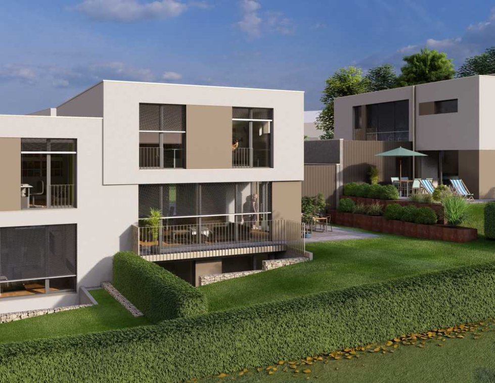 In dieser modernen Doppelhaushälfte mit Doppelgarage können Sie sich bequem einrichten. Aufgrund der leichten Hanglage ist Wohnen auf zwei bis drei Geschossen möglich. Das Erd- und Obergeschoss ist praktisch geplant für eine 4-köpfige Familie: Im Erdgeschoss genießen Sie den modernen und lichtdurchfluteten Wohnbereich mit großzügigen, raumhohen Verglasungen, das Obergeschoss bietet Ihnen zwei geräumige Kinderzimmer, ein tolles Familienbad und ein Schlafzimmer mit Ankleide. Mit dem Ausbau des Hanggeschosses entstehen zwei weitere Zimmer - ideal für die große Familie, als Homeoffice, fürs Au-Pair oder als Wellnessbereich... Die Möglichkeiten sind zahlreich. Architektur ist unsere Leidenschaft - gerne passen wir das Raumprogramm an Ihre Bedürfnisse an. Ihre Fahrzeuge parken Sie bequem in der Doppelgarage direkt am Haus.