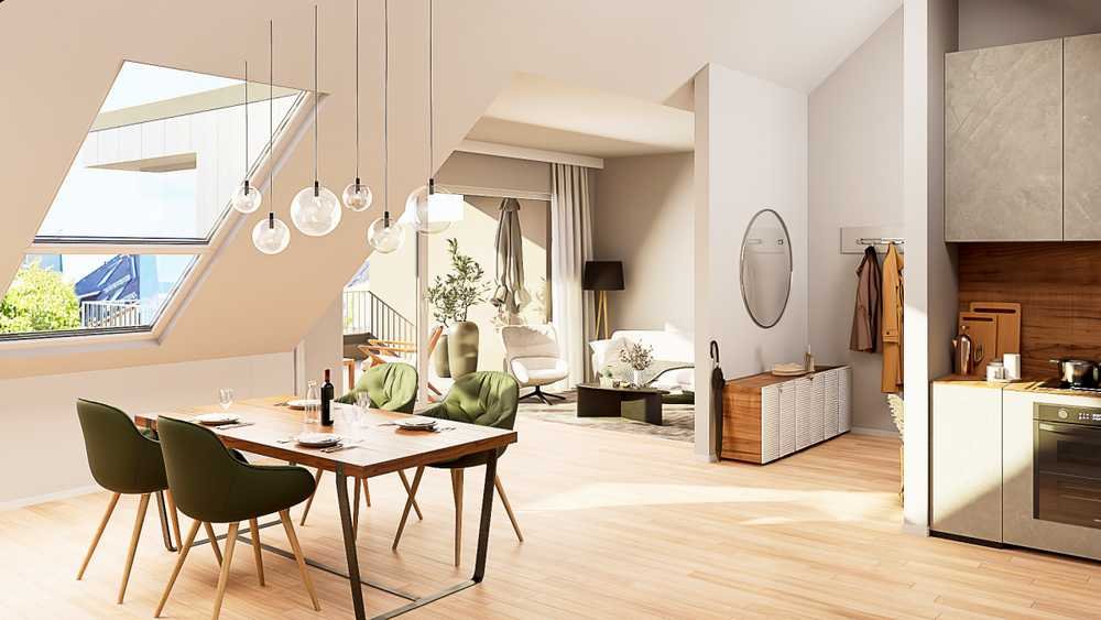 Auch wenn man die klassische Penthouse-Wohnung eher aus Flaschdach-Gebäuden kennt, diese Wohnung mit ihrer genialen Dachterrasse vermittelt Ihnen ein Penthouse-Gefühl!