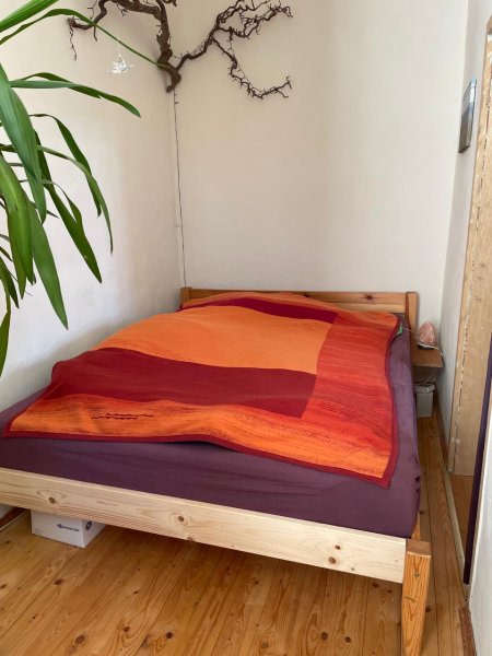 Unsere Wohnung im historischen Fachwerkhaus aus dem 16. Jahrhundert wurde 2022/23 mit viel Liebe und ökologischen Materialien saniert: Lehmputz in allen Zimmern, Dämmung der Außenwände, neue Heizkörper im Zuge der Umstellung auf eine nachhaltige Heizungsanlage. Die originalen Eichenbalken und freigelegtes Fachwerk sorgen für Charakter, neue Holzböden für ein warmes Wohngefühl. Morgens begrüßt dich die Sonne durch die nach Osten ausgerichteten Fenster. Die Ostterrasse hat einen direkten Zugang zum Garten. Die wunderschöne parkartige Gartenfläche von 2500m2 erstreckt sich vor allem über den hinteren Teil des Grundstücks. Es finden sich neben einem Gemüsegarten verschiedene alte Bäume, Wiesenflächen und historische Steinfundamente.